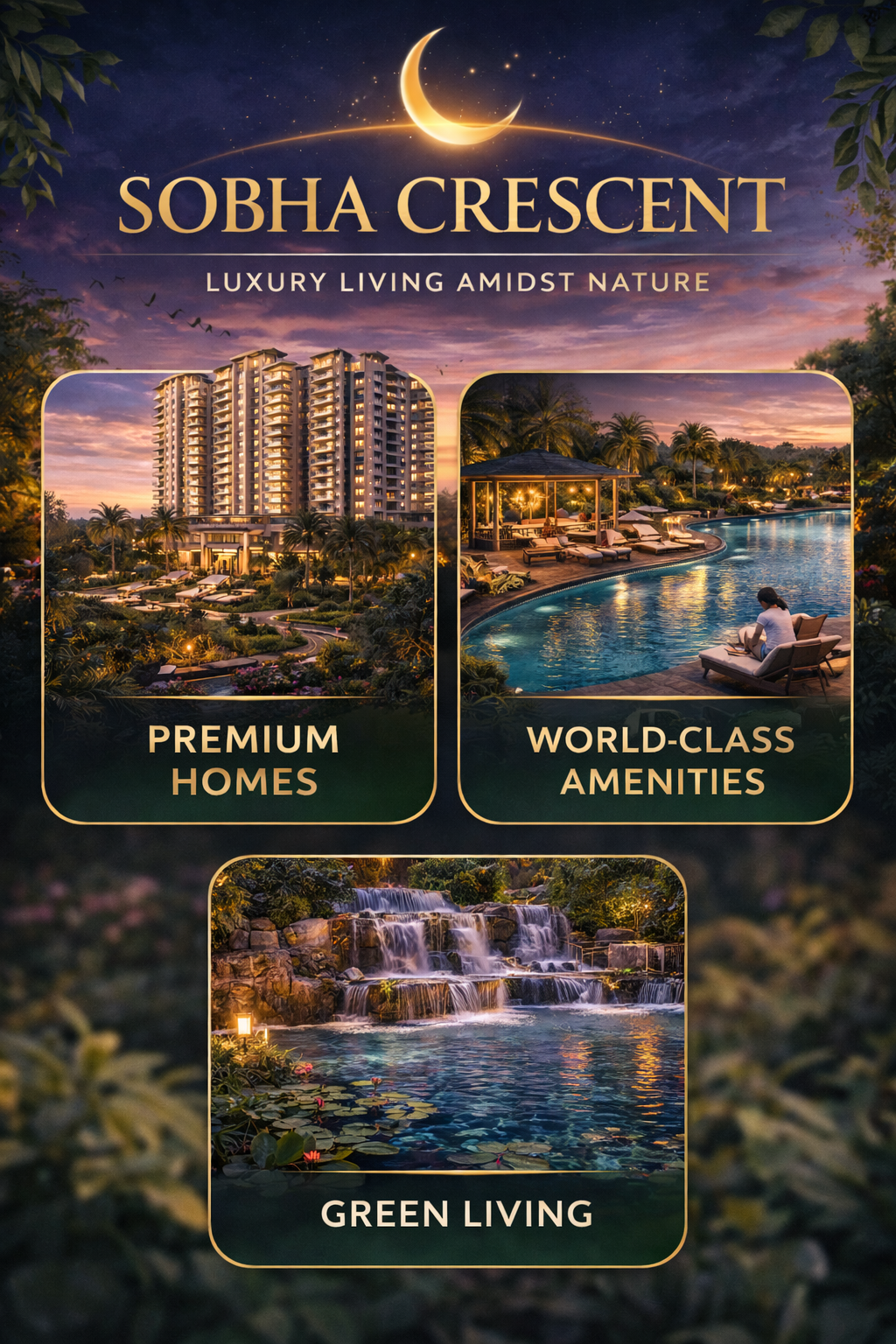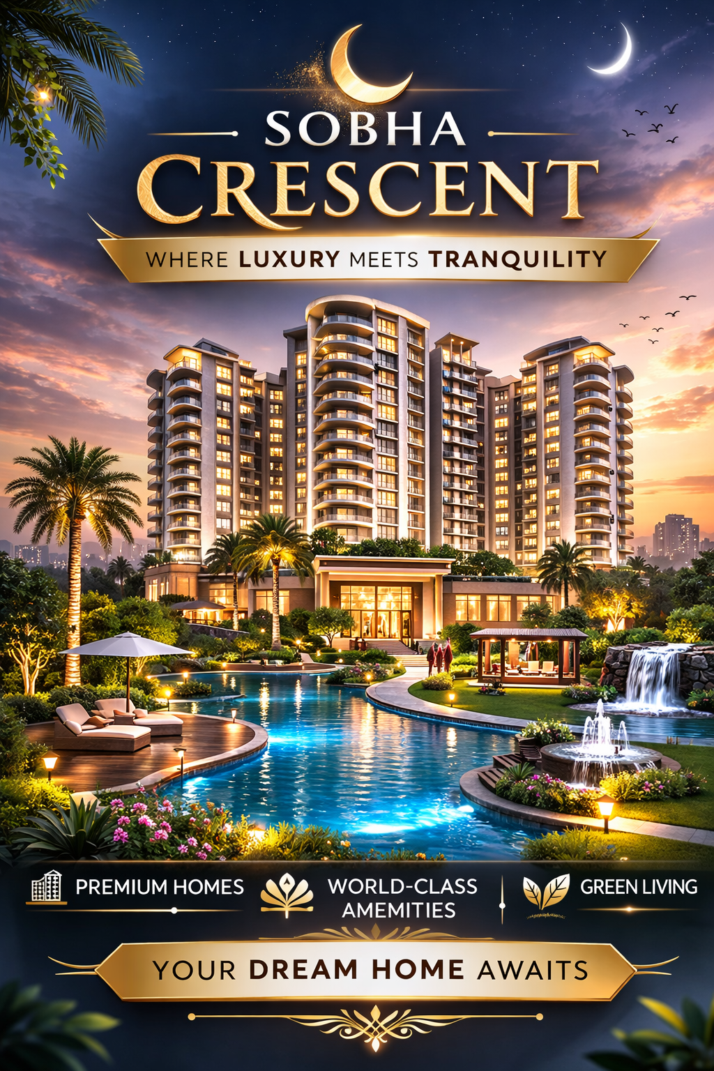Sobha Crescent is built with a focus on lifestyle and community. Residents can enjoy world-class amenities including a five-star clubhouse, swimming pool, spa, gymnasium, sports courts, landscaped gardens, and dedicated play zones for children. The master plan also emphasizes green living with large open spaces and eco-friendly measures.